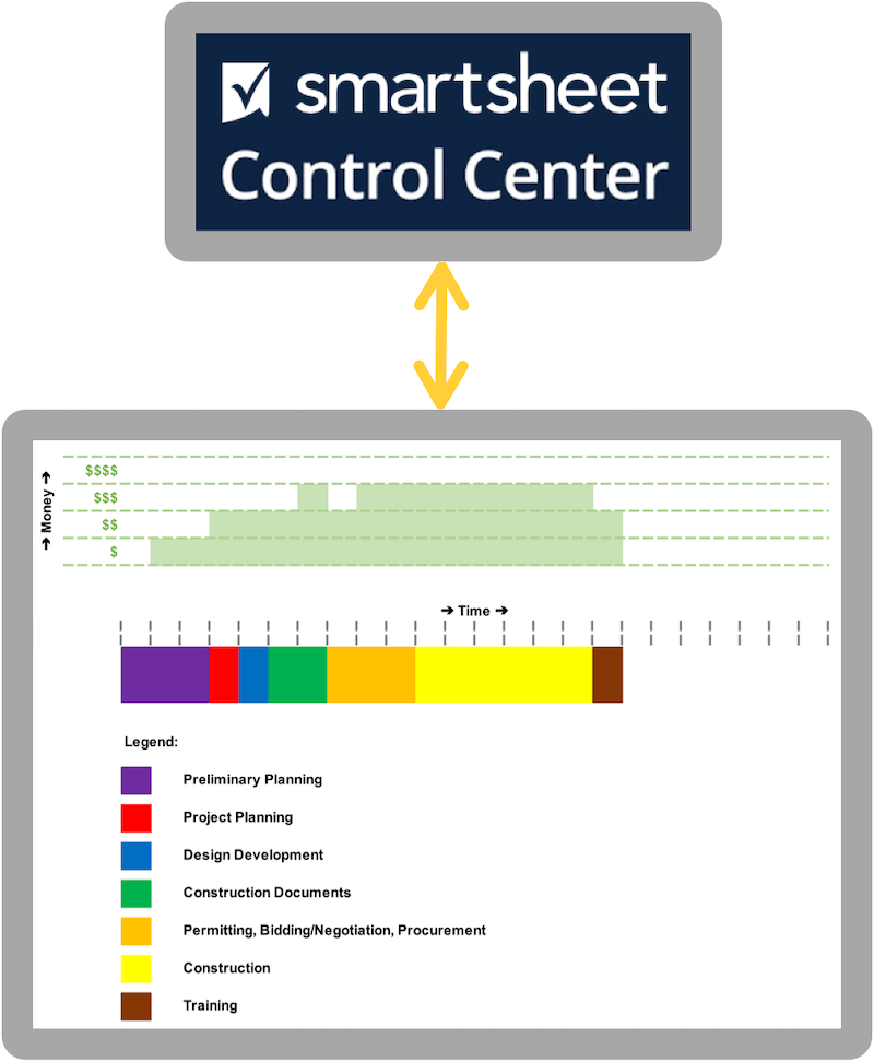 The solution I’m reviewing here uses Smartsheet’s Business level plan with their Control Center add-on. Control Center is really amazing, it allows admins to create what Smartsheet calls Blueprints, which are really a set of spreadsheet templates that are pre-linked to each other as well as to other sheets designed to compile data from all of these templates once they get spun up into real projects. After you create a Blueprint, users can launch it to spin up new locations for the chain where they get fill-in-the-blank type screens for stuff like the city, state, building metrics, and so on — really as many inputs as you need for whatever you need, it’s totally customizable, and you can control what kinds of data go into each prompt to prevent people going off standard. From there, Control Center inputs that data into the templates (maintaining all the links) and organizes all of it into folders and sub-folders specific to the new location. User access/assignments and dashboard reporting are all automatically deployed at this time based on the templates you create as well. It really is magical and a huge time saver.