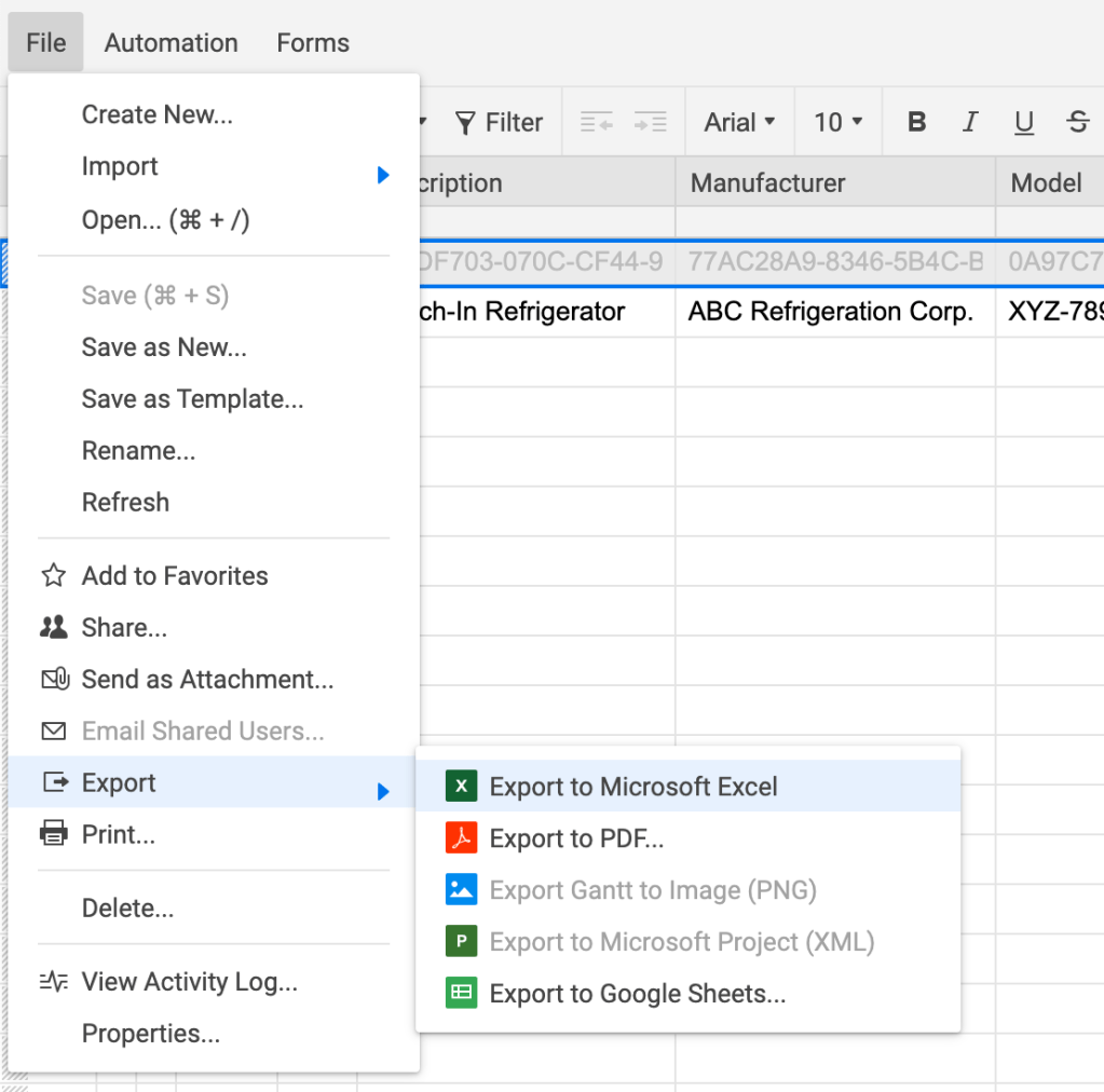 - When you’re ready to export the sheet from Smartsheet back into an XLSX file, do so like you normally would from Smartsheet’s File pull-down menu.