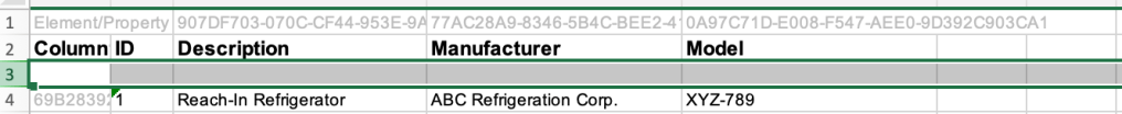 - You can open the exported XLSX file and notice that row 1 in the spreadsheet is collapsed by Archicad. This row contains the GUIDs, which are the Midi-Chlorians of Archicad, who in this case are working behind the scenes to make things from outside of Archicad match up with things inside. You shouldn’t alter row 1 or do anything with it, so close the file without saving. It’s just important to know for later on that row 1 is there, and to note that row 2 is the headers from your Archicad schedule.